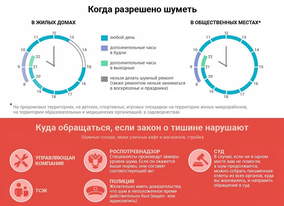 Определение ночного времени и режима тишины федеральное законодательство полностью переложило на муниципалитеты регионов. Поэтому различия будут заключаться в вечерних и утренних часах. В основном ночное время наступает с 22-23 часов вечера и заканчивает свое действие в 6-7 часов утра.